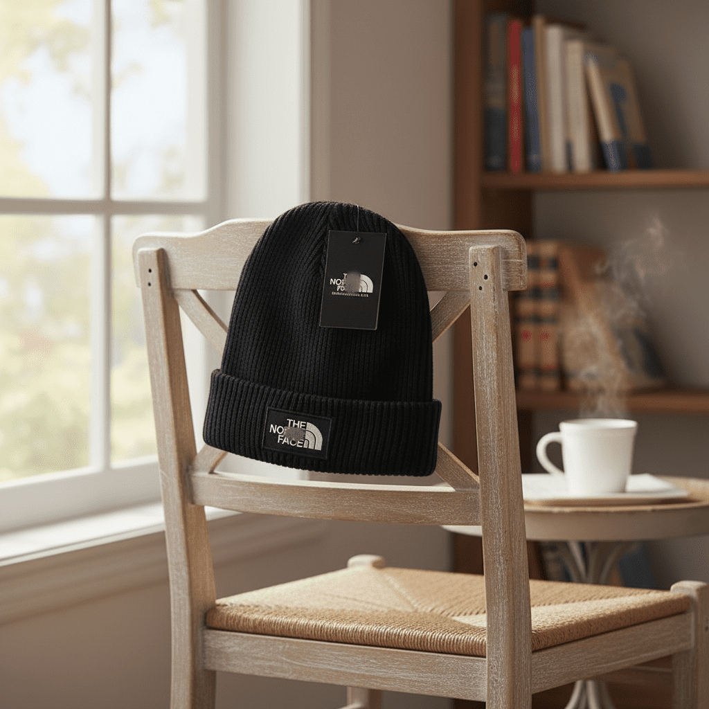 The North Face Black Knit Beanie: Soft ribbed fabric fits snugly, signature logo patch front, unisex design for outdoor and casual wear, warm, stylish, ideal for daily and light outdoor activities.